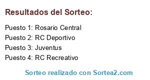 Lista de participantes: RC Deportivo, Rosario Central, RC Recreativo, Juventus.