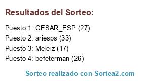 Lista de participantes: ariesps (33) , CESAR_ESP (27) , befeterman (26) , Meleiz (17).