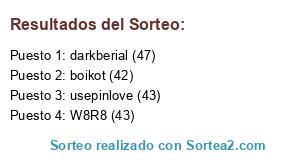Lista de participantes: darkberial (47), donovan (46), W8R8 (43), usepinlove (43), boikot (42).