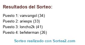 Lista de participantes: loncho2k (41), vanvangol (34), ariesps (33), befeterman (26), Meleiz (17).