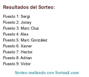 Lista de participantes: Jonay, Marc González, Alex, Marc Clua, Victor, Sergi, Hector, Joan, Xavier, Adrian.