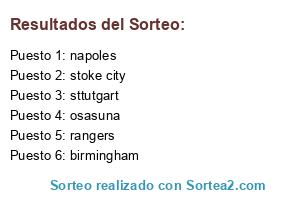 Lista de participantes: stoke city, sttutgart, birmingham, napoles, osasuna, rangers.