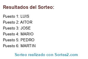 Lista de participantes: JOSE, MARIO, LUIS, MARTIN, PEDRO, AITOR.