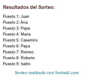 Lista de participantes: Juan, Ana, Pepe, Romeo, Isidro, Maria, Pepa, Roberto, Casemiro.