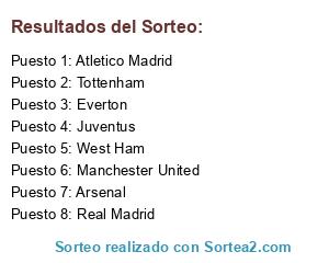 Lista de participantes: Atletico Madrid, Real Madrid, Juventus, Arsenal, West Ham, Manchester United, Tottenham, Everton.
