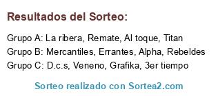 Lista de participantes: Errantes, Rebeldes, Remate, Grafika, Titan, D.c.s, Alpha, 3er tiempo, Mercantiles, Al toque, La ribera, Veneno.