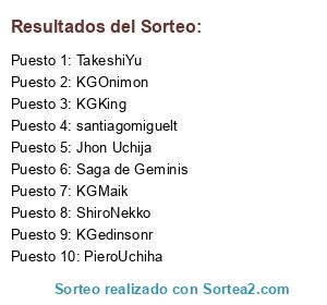 Lista de participantes: AngieSama, BarucAzuki, CristianThunder, Deom, EDOArcane, KGedinsonr, KGJuliux, KGKai, KGKing, KGKushina, KGOnimon, Kirigaya F, Lady Katrina, Layons, LordKamael, SGItami, TakeshiYu, Vivi, xshura, Davss, FelixUchiha, Jhon Uchija, KGAndrey, Saga de Geminis, santiagomiguelt, KGDaiken, KGMaik, PieroUchiha, SantiUzumaki, ShiroNekko.