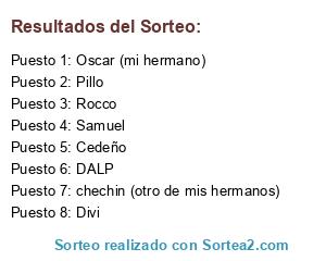 Lista de participantes: Samuel, Rocco, Cedeño, DALP, Pillo, Oscar (mi hermano), Divi, chechin (otro de mis hermanos).