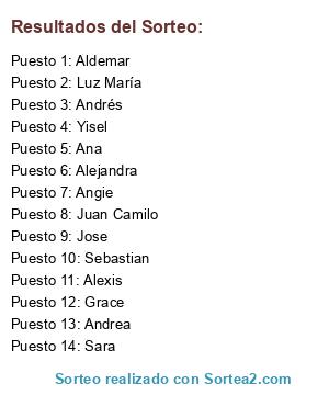 Resultados del sorteo: