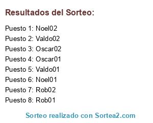 Lista de participantes: Noel01, Noel02, Oscar01, Oscar02, Rob01, Rob02, Valdo01, Valdo02.