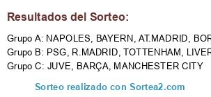 Lista de participantes: MANCHESTER CITY, R.MADRID, PSG, BARÇA, LIVERPOOL, JUVE, BAYERN, AT.MADRID, BORUSSIA, TOTTENHAM, NAPOLES.