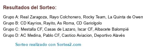 Lista de participantes: Real Zaragoza, As Roma, Deportivo Alavés, Iscar CF, CD Kayrios, Caotico Aviacion, La Quinta de Owen, Rayo Colchonero, Casas de Lazaro, Albacete Balompié, Rocky Team, Mestalla CF, CD Gariolgolo, Pablo CF, AC Medina, Rayito.