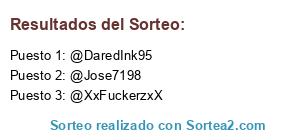 Lista de participantes: @k3viNs, @altair478, @awedfgisback, @tttttttttty, @Diego_Ignacio_, @yzek, @DaredInk95, @theironboss21, @AlejandroSchultz, @CebaJohn, @AlexAlmoza666, @ironhead666, @MetallicaSebas, @Jorge61912, @jaramilloomaster, @xxKillgamesxx, @AlanHtt, @MarianoAbadie, @TOOOOOOOTE, @Jose7198, @agusfancho, @Perales158, @haroldmaster, @RofterX10, @XxFuckerzxX, @ivanpower, @DavOHammett, @keikorzo123, @salvaone, @grimmjow_8a, @sraw, @marcosaww, @montesmail, @Clon_De_jEmilio, @Tatsu91, @xDthenewxD, @chegue0505, @Nick1997lml.