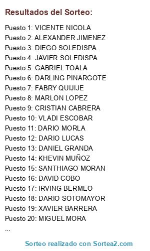 Resultados del sorteo: