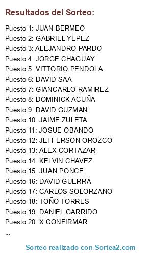 Resultados del sorteo: