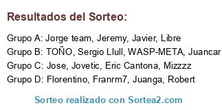 Lista de participantes: Franrm7, TOÑO, Jose, Libre, Mizzzz, Juanga, Juancar, Sergio Llull, Jorge team, Jeremy, Jovetic, Javier, WASP-META, Robert, Eric Cantona, Florentino.