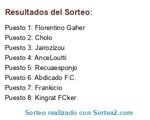 Lista de participantes: Abdicado F.C., Kingrat FCker, Florentino Gaher, Jairozizou, Cholo, Frankicio, AnceLoutti, Recuaesponjo.