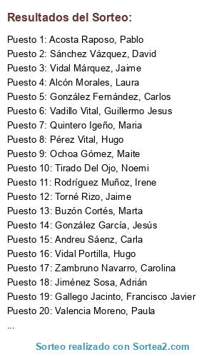 Lista de participantes: Acosta Raposo, Pablo, Alcón Morales, Laura, Andreu Sáenz, Carla, Blanco Montaño, Blanca Paloma, Buzón Cortés, Marta, Escobar Torné,Paz, Gallego Jacinto, Francisco Javier, González Fernández, Carlos, González Fernández, Manuel, González Fernández, Marcela, González García, Jesús, Jiménez Sosa, Adrián, Ochoa Gómez, Maite, Pérez Vital, Hugo, Quintero Igeño, Maria, Rodríguez Ballesteros, Ezequiel, Rodríguez Muñoz, Irene, Sánchez Vázquez, David, Tirado Del Ojo, Noemi, Torné Rizo, Jaime, Vadillo Vital, Guillermo Jesus, Valencia Moreno, Paula, Venegas Ventas, Aithana, Vidal Márquez, Jaime, Vidal Portilla, Hugo, Zambruno Navarro, Carolina.