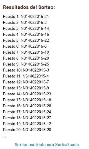 - 2015-02-14 10:08:26 (GMT): Comienza el sorteo