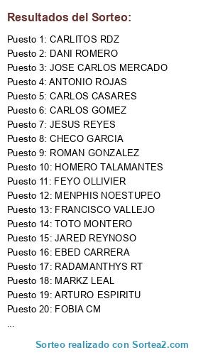 Lista de participantes: CHECO GARCIA, CARLOS GOMEZ, ROMAN GONZALEZ, RADAMANTHYS RT, FRANCISCO VALLEJO, JESUS REYES, CESAR FLORES, FEYO OLLIVIER, GUILLERMO SANCHEZ, HOMERO TALAMANTES, CARLOS CASARES, CANO DUEÑAS, EBED CARRERA, ARTURO ESPIRITU, ANTONIO ROJAS, DANI ROMERO, JARED REYNOSO, MARKZ LEAL, CARLITOS RDZ, JOSE CARLOS MERCADO, TOTO MONTERO, ULISES BARRON, FOBIA CM, MENPHIS NOESTUPEO.