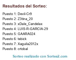 Lista de participantes: crtobal, Devil-Cr9, Xaguila2012x, tebick, GAARA024, xDale_Candelax, Z3tina_20, LUIS-R-GARCIA-29.