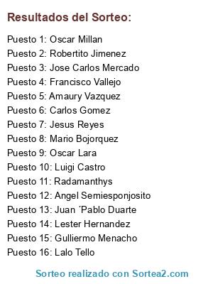 Resultados del sorteo: