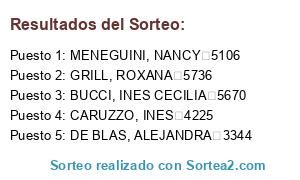 - Puesto 1: MENEGUINI, NANCY 5106