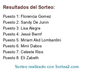 Lista de participantes: Lisa Alegre(5 participaciones), Jessii Bwmf(5 participaciones), Sandy De Junin(5 participaciones), Mimi Dabos(5 participaciones), Florencia Gomez(5 participaciones), Eli Zabeth(5 participaciones), Celeste Rios(5 participaciones), Miriam Akd Lombardini(5 participaciones).