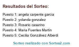 Lista de participantes: Ana Maria Godoy Durban, Victoria Nava, Eva Turrero busto, angela carpente garcia, Carmen María, Darmy Colina González, Nuria Macías García, Nuria Lombana, Lourdes Dinares Marcos, Maite Sevilla del Pozo, Silvia Bartolomé Macías, ANA FERNANDEZ, Teresa Hernández R., Luisa Menargues Polo, chelo molina aparicio, Paula Rodriguez Macias, Elsa Dos Santos, Cristina Romero, josune ruiz valencia, Zulema Pontes Vidal, Juan Carballal Argüello, Raquel Gonzalez Arevalo, begoña diaz ramirez, Xisca Rotger Gongora, angeles ramos, luz victoria muñoz saura, Maravillas Sánchez Morales, isabel borrallo gallardo, Fuencisla Talens Galicia, Soraya Rodriguez Baena, Antonia López Santiago, tere cano, Alicia Bautista Torres, diana fernandez gomez, Alicia Pérez, Nieves Paz Gestoso, Begoña Moreno Robles, maite floriani gonzalez, Maria del Carmen Hernandez Mendez, Mónica Casas Angullo, Julia López López, Jesús Pérez Cámara, Marcela Orrego Vergara, Yolanda Cantarero López, almudena fernandez, BEATRIZ LASTRA SANCHEZ, Milagros Gonzalez, MAR ROBLES MERINO, vero baz romero, Eva Burgos Herrera, Nerea Brito, Montse Prieto Martinez, Ana Maria Ferri, Jennifer Bonilla Pizarro, Nerea González Cortina, Pilar Gil Costa, Maria Angeles Diaz Peinado, Veronica Gonzalez Lopez, Núria Salamanya, Xandra Miguelez Mendez, Nieves Vivas, Cristina Hurtado Borrego, Ana Breña Breña, Julia Prieto Pérez, Ìnmaculada Valdivia Sáez, Ignacio Jaspe, eva sanchez molina, Vanesa Gutiérrez, Mari Carmen Maroto Jimenez, Mª del Mar Cervantes Villalobos, Maria Rosa Fdz. Blanc, María José V. P., Nerea Lafraya Sanchez, ana perales, VIRGINIA LOPEZ GUTIERREZ, Patricia Beneite Garcia, yolanda gonzalez, alexandra calleja gomez, PEDRO GARNUNG AYBAR, Francisco Javier Quiros Romero, ana romero, Marina Smirnova, Belen Risco Rojas, JOSUNE ARRIZABALAGA FERNANDEZ, MARIA BENITO, Eukene llanos, Rosario casarino, maria duque, ISABEL FORTEA, Julia Martin Olmos, magdalena cachafeiro corchuelo, Cecilia Gonzálvez Alberdi, ruth fabra, Obe Rosa, Yolanda Isabel Hurtado Garcia, paula oterino conde, vanesa calvo chao, Teresa Ezquerro, ines Díaz g, NATALIA MARTÍN ROSADO, Carla Isabel López Arráiz, Lola Azañedo Lopez, Ana Gomez, feli sancho benedicto, Nuria Perez Ortega, Adilia Vallejo Sañudo, Margarita Sañudo Borbolla, César Vallejo Herrero, Simón VallejomSañudo, Teresita Baños Peña, Estefany Velásquez Famiglietti, Judith Gómez Marchán, Ana Carpintero Alonso, Mª Dolores Meseguer Olmo, ESTER TUREGANO CABAÑERO, Paqui Molina López, nuria guiu diaz, Lorna Bao Busquet, mariana bude ugarte, Elisenda Bos, Mariajosé Moyano, Maria Eugenia López Medina, Ana elena perls, belen fdz de retana, aliona angheluta, silvia gonzalez peña, Idaira Calvente Santana, Maria Jose Lopez Moreno, raul ruiz martin, Mª Pilar Castillo, Carmen Trujillo Poveda, Katerina Knyazhechenko, REBECA FERROL CALERO, Pilar Vilches González, Judith Holgado, María Ramos Gil, Blanca Núñez Rodriguez, Maria Fuentes Martin, Lara Martin Garcia, angeles gonzalez hernandez, Nuria Roman, patricia romero lorenzo, MARIA MERCEDES PEREZ ALFONSO, Cristina Palomares Sánchez, ana martin, Luisa Maria Garcia Rpiso, joana mulet salva, Liliana Guerra, Ana Belen Gomez, emma diaz salces, Gemma L.G., Carmen Blanco Nicart, patricia hidrobo garcia, eli guerrero, maria del mar, CRISTINA JURADO.