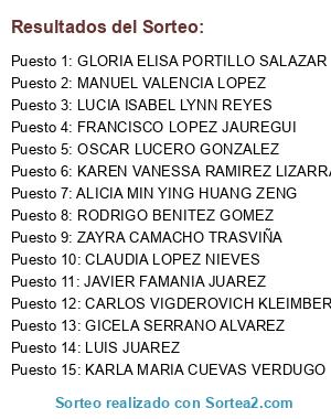 Resultados del sorteo: