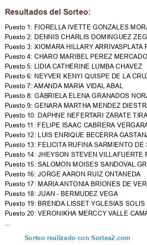 Resultados del sorteo: