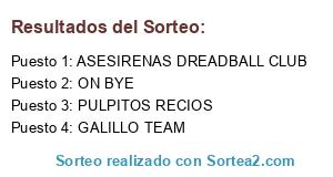 Lista de participantes: ASESIRENAS DREADBALL CLUB, PULPITOS RECIOS, GALILLO TEAM, ON BYE.