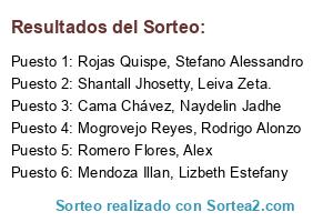 Lista de participantes: Cama Chávez, Naydelin Jadhe, Mendoza Illan, Lizbeth Estefany, Mogrovejo Reyes, Rodrigo Alonzo, Romero Flores, Alex, Rojas Quispe, Stefano Alessandro, Shantall Jhosetty, Leiva Zeta..