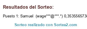 Este sorteo ha sido certificado por Sortea2. Sortea2 garantiza que:
