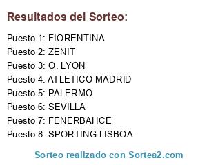 Lista de participantes: SPORTING LISBOA, SEVILLA, PALERMO, ATLETICO MADRID, ZENIT, PSG, ROMA, FENERBAHCE, FIORENTINA, O. LYON, OPORTO NAPOLES.