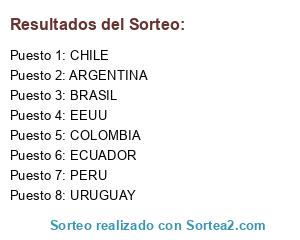 Lista de participantes: BRASIL, ARGENTINA, URUGUAY, COLOMBIA, EEUU, CHILE, PERU, ECUADOR.