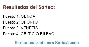 Lista de participantes: VENEZIA, OPORTO, CELTIC O BILBAO, GENOA.