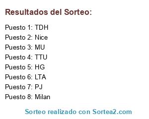 Lista de participantes: TDH, MU, LTA, Milan, TTU, HG, Nice, PJ.