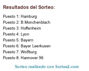 Lista de participantes: Bayern, Hamburg, Wolfburg, Bayer Leerkusen, Hoffenheim, Lyon, Hannover 96, B.Monchenblach.