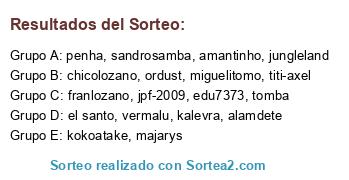 Lista de participantes: el santo, amantinho, tikitaka, sandrosamba, alamdete, vermalu, kokoatake, miguelitomo, tomba, titi-axel, penha, jpf-2009, majarys, elphomega, chicolozano, franlozano, ordust, kalevra, edu7373, jungleland.