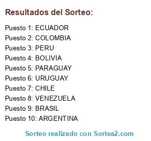 Lista de participantes: ARGENTINA, BRASIL, URUGUAY, PARAGUAY, ECUADOR, CHILE, COLOMBIA, PERU, VENEZUELA, BOLIVIA.