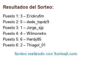 Lista de participantes: 1 – Jorge_sjp, 2 – Thiagol_01, 3 – Erickrufim, 4 – Wilmonstro, 5 – dede_topdz9, 6 – Herdy85.