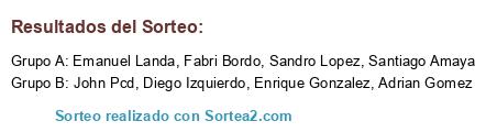 Fase de Grupos ( Van a quedar tres grupos de 4 y uno de tres ,del grupo de 3 el 1º nombre pasa al grupo a el 2º al grupo b y el 3º nombre al grupo c )