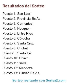 Resultados del sorteo: