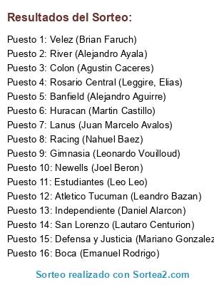 Resultados del sorteo: