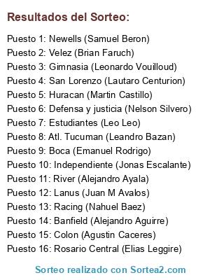 Resultados del sorteo:
