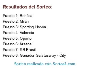 Lista de participantes: Benfica, Sporting Lisboa, RB Brasil, Ganador Galatasaray - City, Milán, Valencia, Arsenal, Oporto.