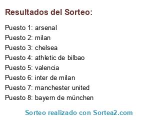 Lista de participantes: athletic de bilbao, manchester united, chelsea, inter de milan, bayern de münchen, arsenal, milan, valencia.