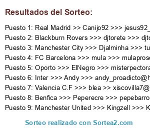 - Partido 3: Manchester United >>> Kingzell >>> Kingzell_pro@hotmail.com