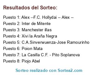 Lista de participantes: Alex --F.C. Hollydai -- Alex --, Piojo Abel, Manchester illas, Xivi la Araña Negra, La Casilla C.F. - Pito Soplanova, Inter de Mitente, Poion Mata, C.A.Sinverwuenza-Jose Ramourinho.